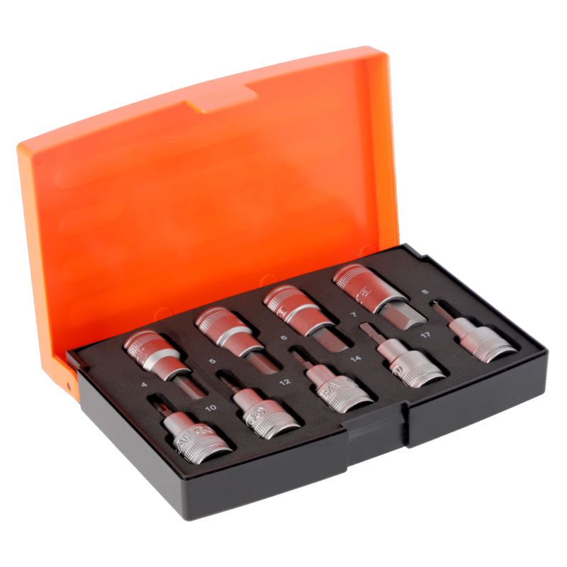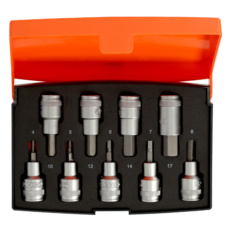 9 douilles tournevis 6 pans 1/2": 4, 5, 6, 7, 8, 10, 12, 14, 17mm