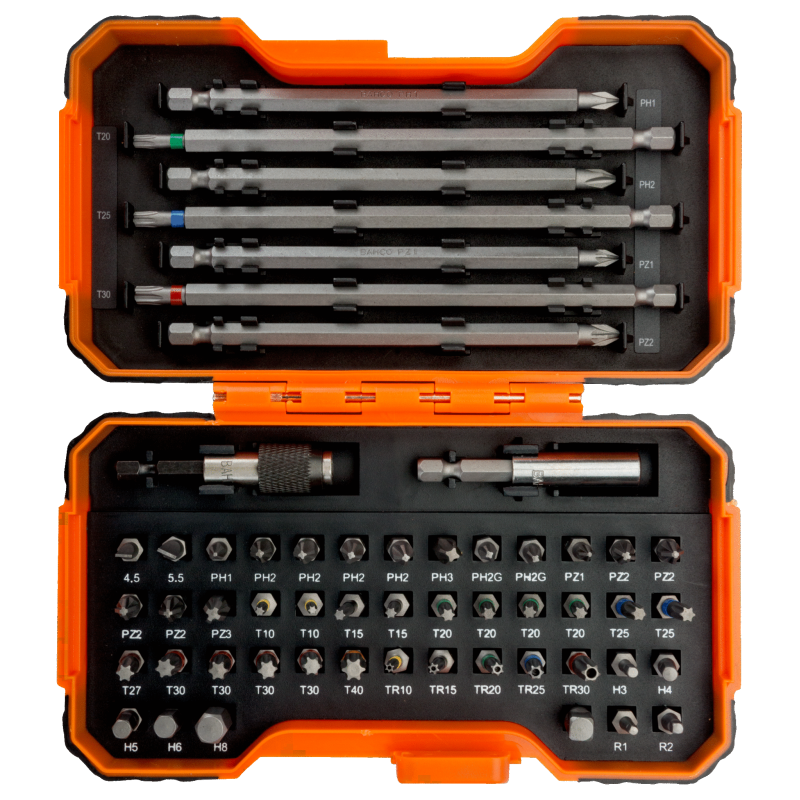 Contient 54 pièces: 51 embouts + 1 porte-embout universel magnétique + 1 porte-embout magnétique à dégagement rapide + 1 adaptateur 1/4"